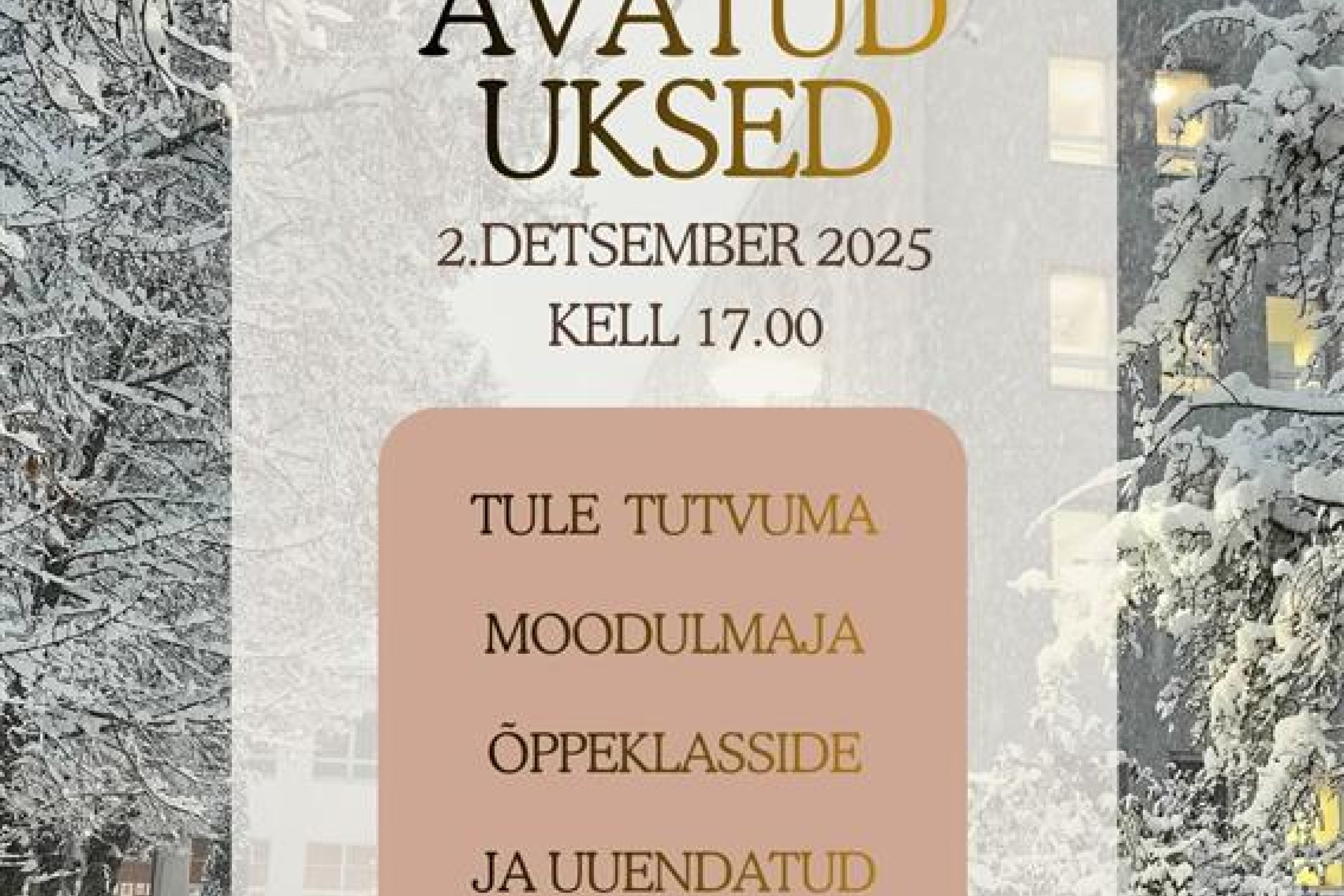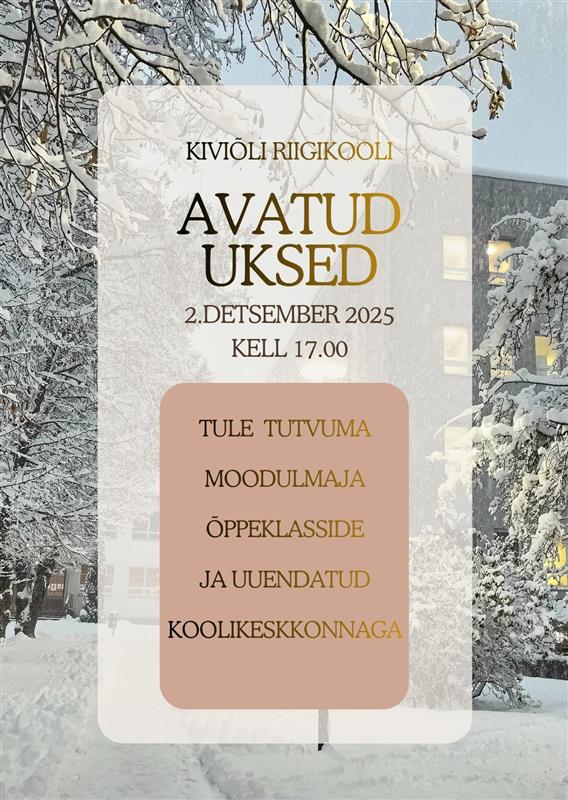 Hea kogukonnaliige, avame koolimaja uksed 2.12 kell 17.00. Ootame huvilisi tutvuma moodulmaja klassiruumide, uuendatud koolikeskkonna ning uute võimalustega meie koolis.