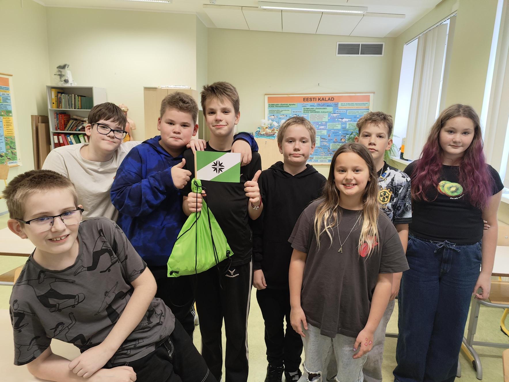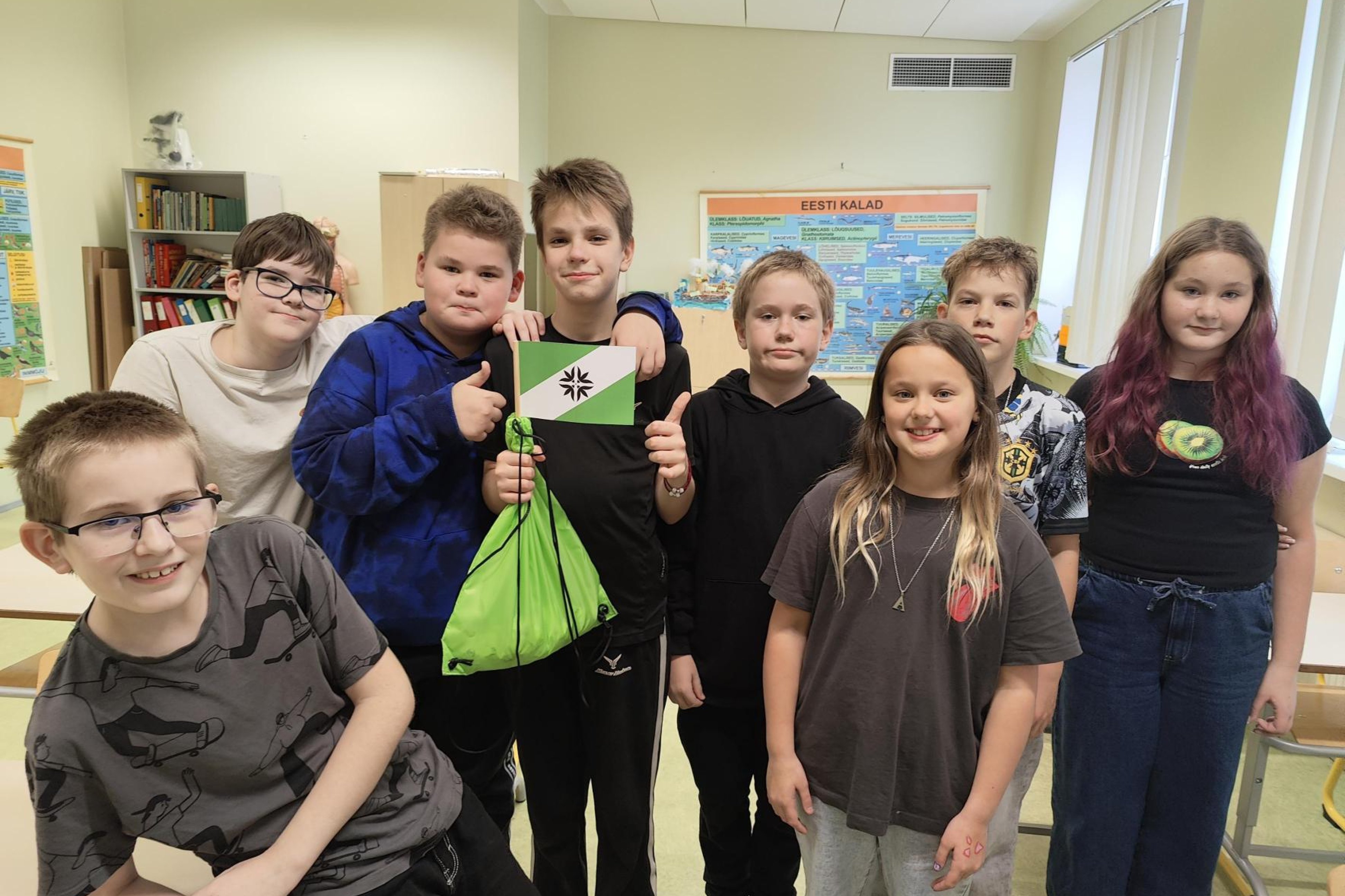 Pildil on Frank valla poolt edastatud tänukingiga oma klassikaaslaste keskel.